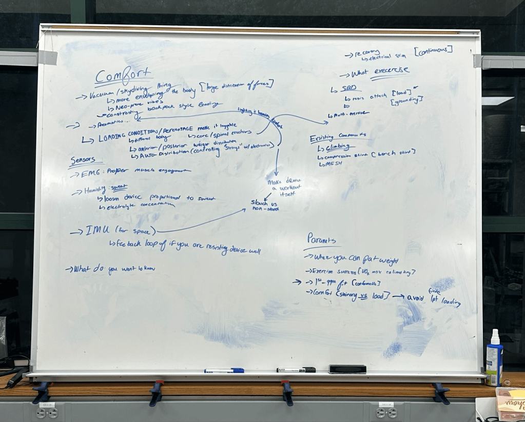 During the brainstorming phase, my main goal was to consider different sensing tools that we could utilize and that could be integrated with the mechanical design. We first drafted a list of potential aspects our harness would aim to address.