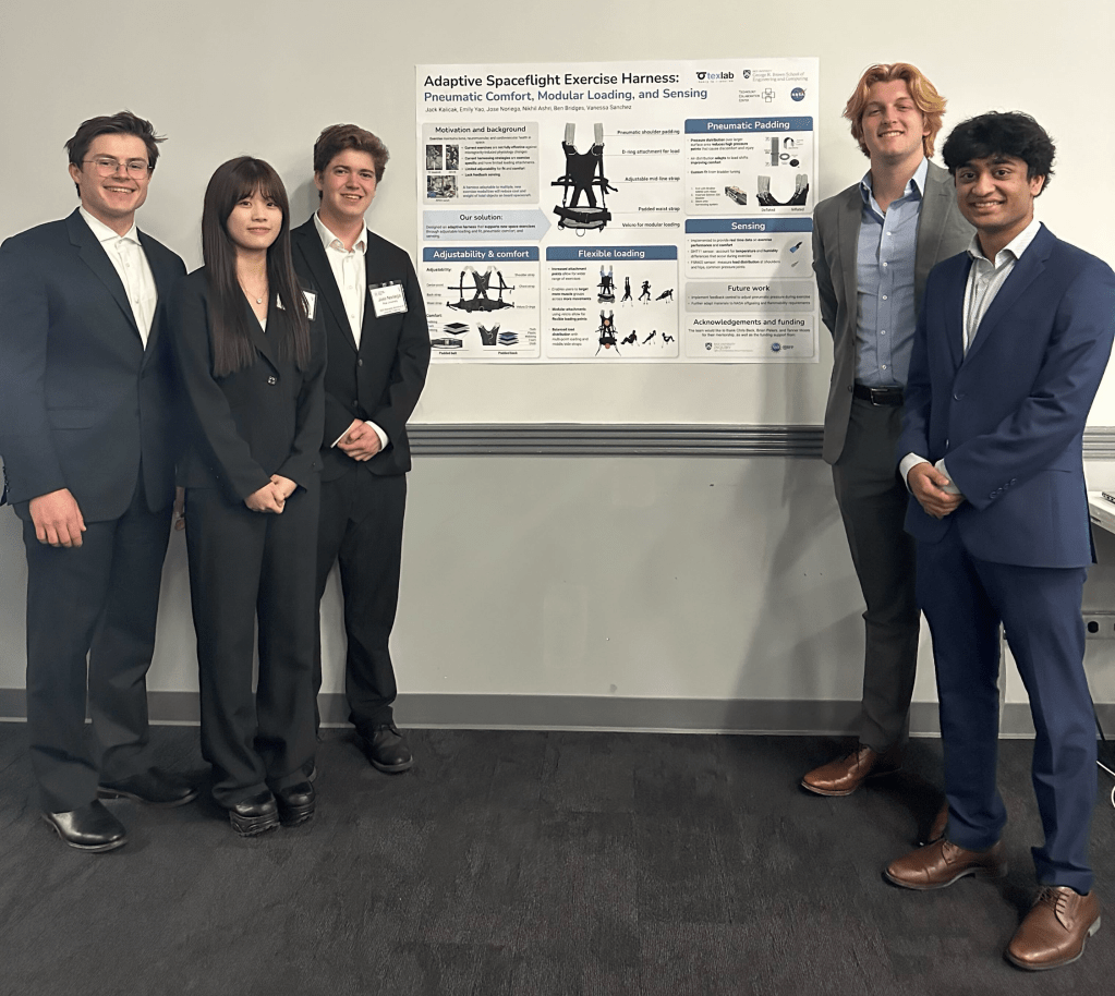This project tackles the challenge of exercise in zero-g, where traditional harness systems strain and limit effectiveness. Leading the electrical team, I integrated pressure, temperature, and humidity sensors with an ESP32 to monitor load and comfort parameters wirelessly. Through prototyping, circuit calibration, and NASA feedback, I delivered a functional, human-centric prototype in just four weeks.Our team also won the “Best Challenge Response” for our design out of all the participating teams.